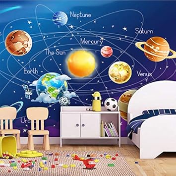 Personnalisable Taille Papier Peint Murale 3D Dessin Animé Planète Planète Système Solaire Photo Papier Peint Pour Enfants Chambre Peinture Murale Mur Papier Soie Tissu 300X210Cm A1 Peintures, outils et traitement des murs